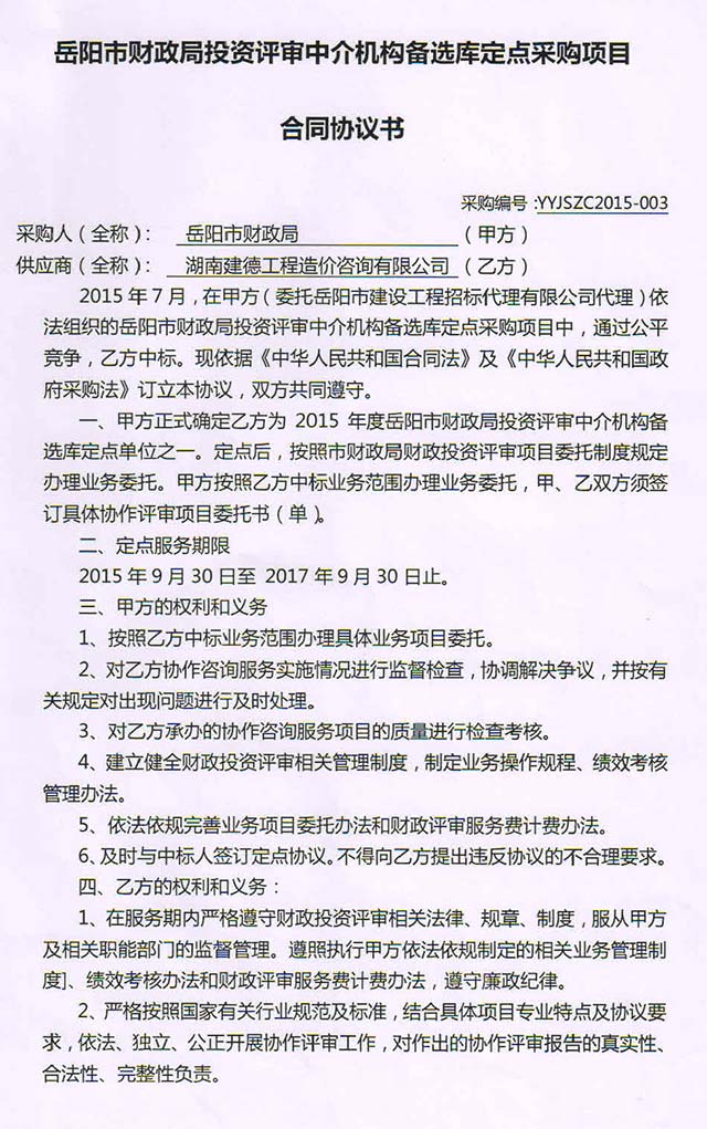 我公司成功入圍岳陽市財政局投資評審中介機構備選庫定點采購名單